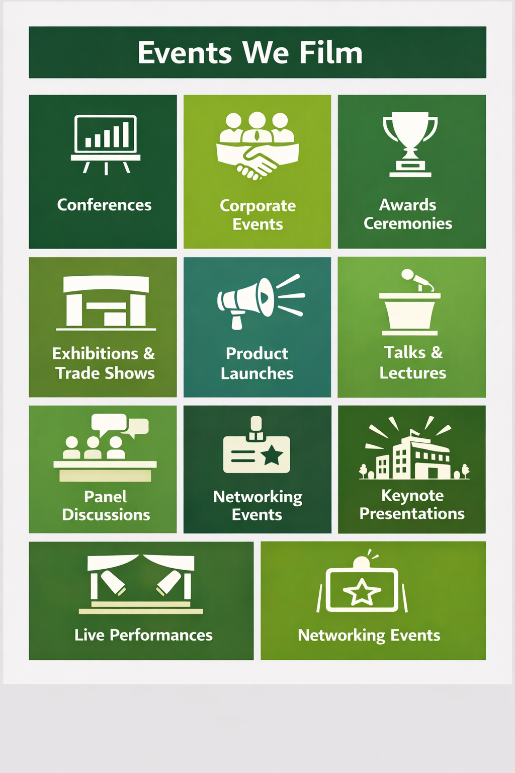Are you planning a conference, lecture, award ceremony, or exhibition? Hiring a professional videographer can transform your event into high-quality, versatile video content that capturesevery important moment.
